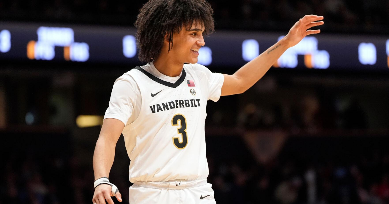 Vanderbilt guard Tyler Tanner (3) plays during the first half of an NCAA college basketball game against Mississippi, Saturday, Jan. 31, 2026, in Nashville, Tenn.