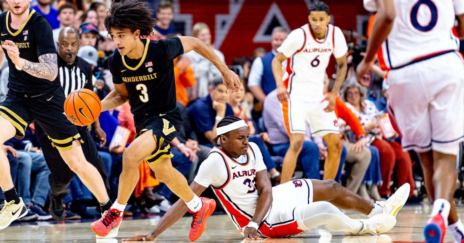 Auburn’s Tahaad Pettiford (0) moves toward the basket during the second half of Tuesday’s game against Vanderbilt at Neville Arena in Auburn.
