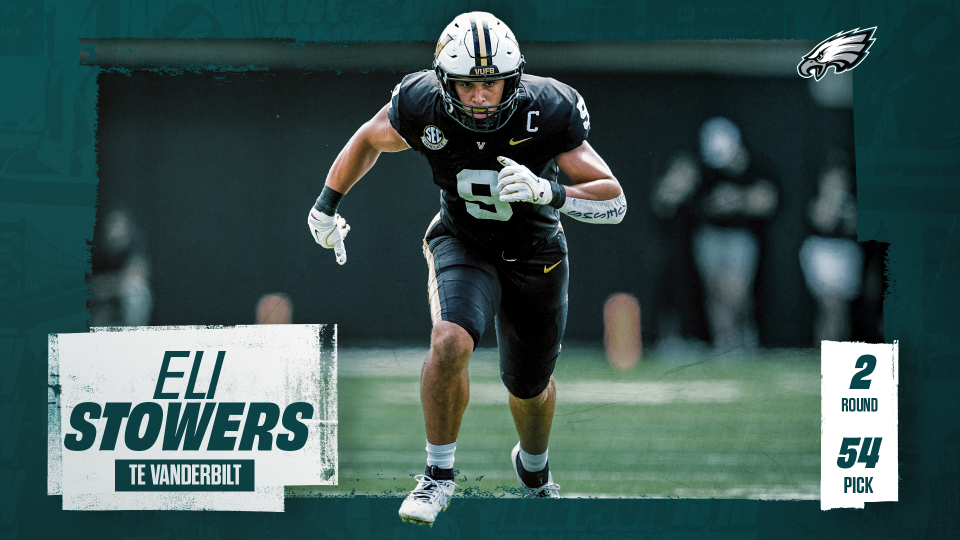 The Eagles add another skill position player, drafting tight end Eli Stowers out of Vanderbilt with the No. 54 overall pick. Stowers played five seasons of college football, starting his career at Texas A&M before spending a year at New Mexico State and transferring to Vanderbilt for his final two seasons.