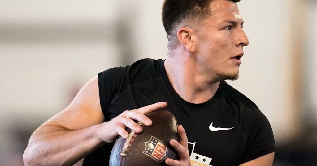 Vanderbilt quarterback Diego Pavia gets into passing position during football pro day at Vanderbilt University in Nashville, – Buffalo News